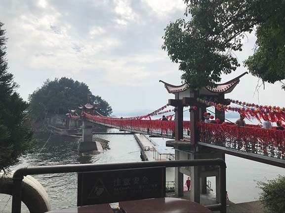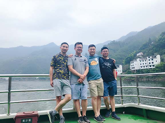 游览完齐云山,全体员工就近入住山下的祥富瑞精品文化客栈,第二天一早驱车前往本次活动的第二站—千岛湖。千岛湖(新安江水库),位于浙江省杭州市淳安县境内,小部分连接建德市西北,是为建新安江水电站拦蓄新安江下游而成的人工湖。千岛湖水在中国大江大湖中位居优质水之首,为国家一级水体,不经任何处理即达饮用水标准,被誉为“天下第一秀水”。本次集体游游览了千岛中的其中四个,员工们体验了摇船、玻璃栈道、滑索等多个娱乐项目。