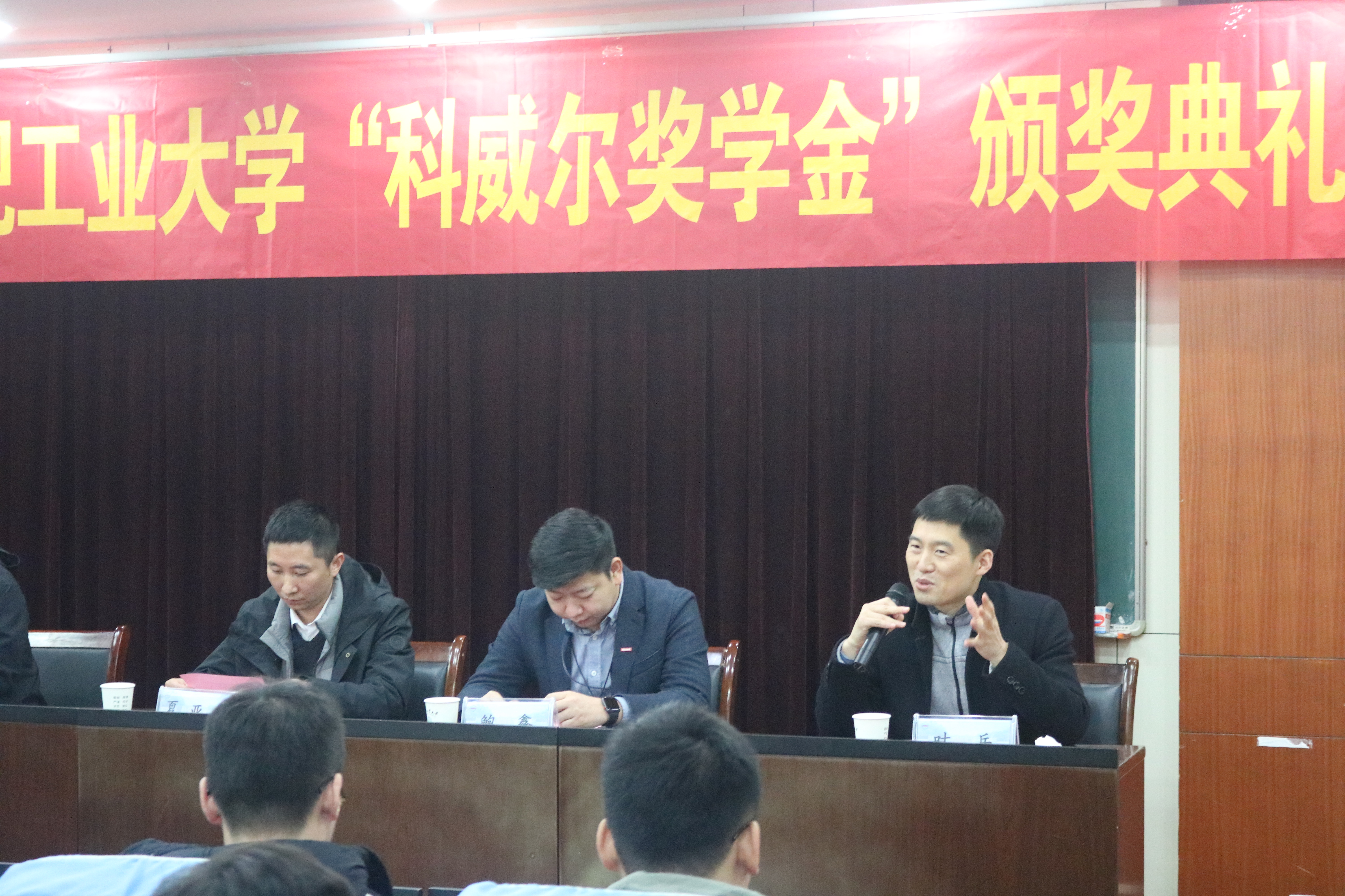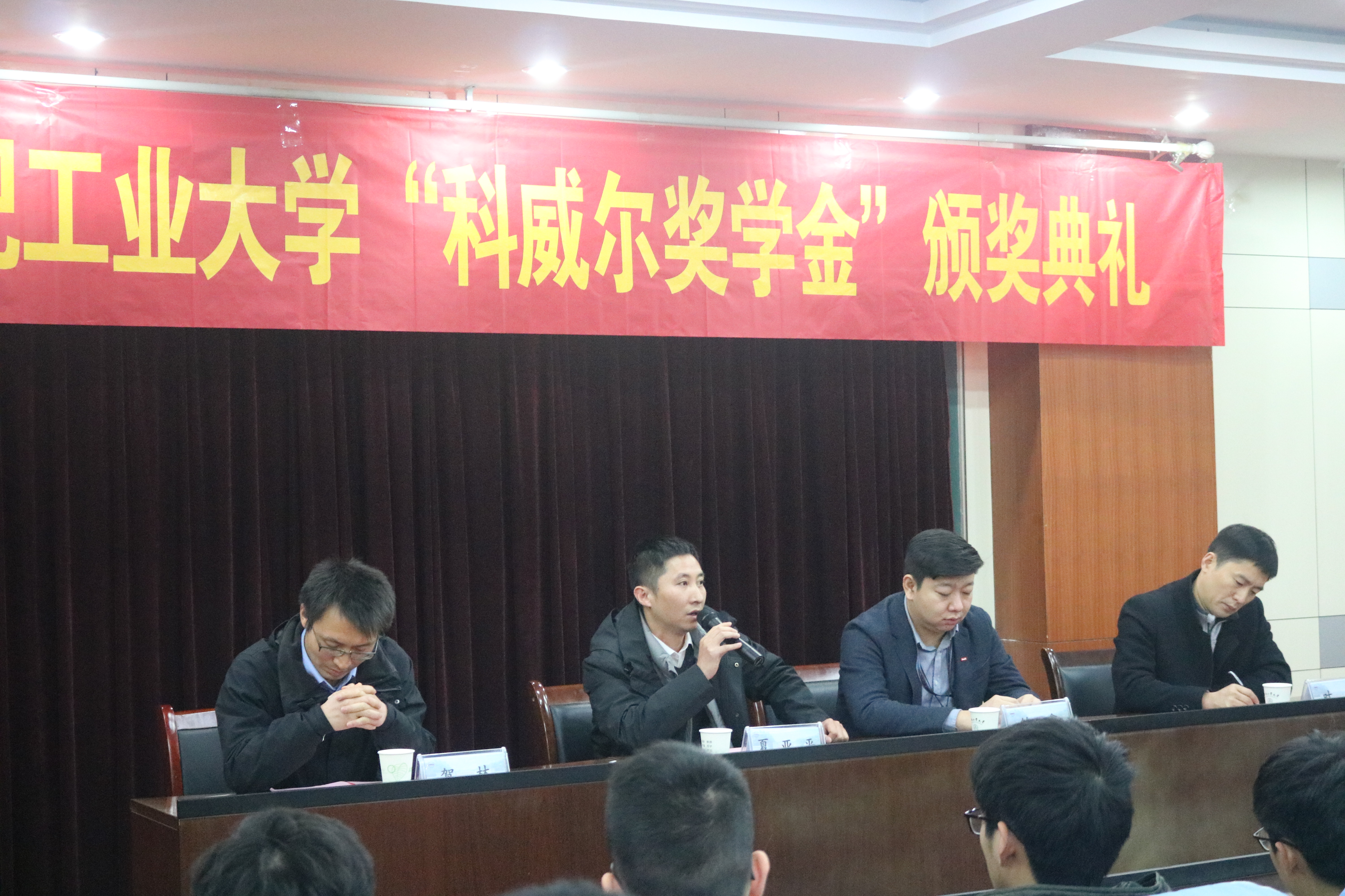 今年是“万向娱乐奖学金”在合肥工业大学设立的第六年,万向娱乐奖学金的设立旨在培养品学兼优、全面发展的优秀大学生,在感恩反哺教育的同时,也为广大学生树立榜样、鼓励他们奋发图强,成为知识、能力、素养三位一体的专业人才。首先由合肥工业大学汽车与交通工程学院党委副书记叶兵致辞,他向莅临颁奖典礼的嘉宾表示热烈欢迎,向获得奖学金的同学表示祝贺, 希望学生们通过颁奖典礼了解到企业及社会各界对学校发展的支持并从中学会感恩,希望参会学生以为企业代表榜样,勤奋学习,刻苦钻研,勇于争先。
